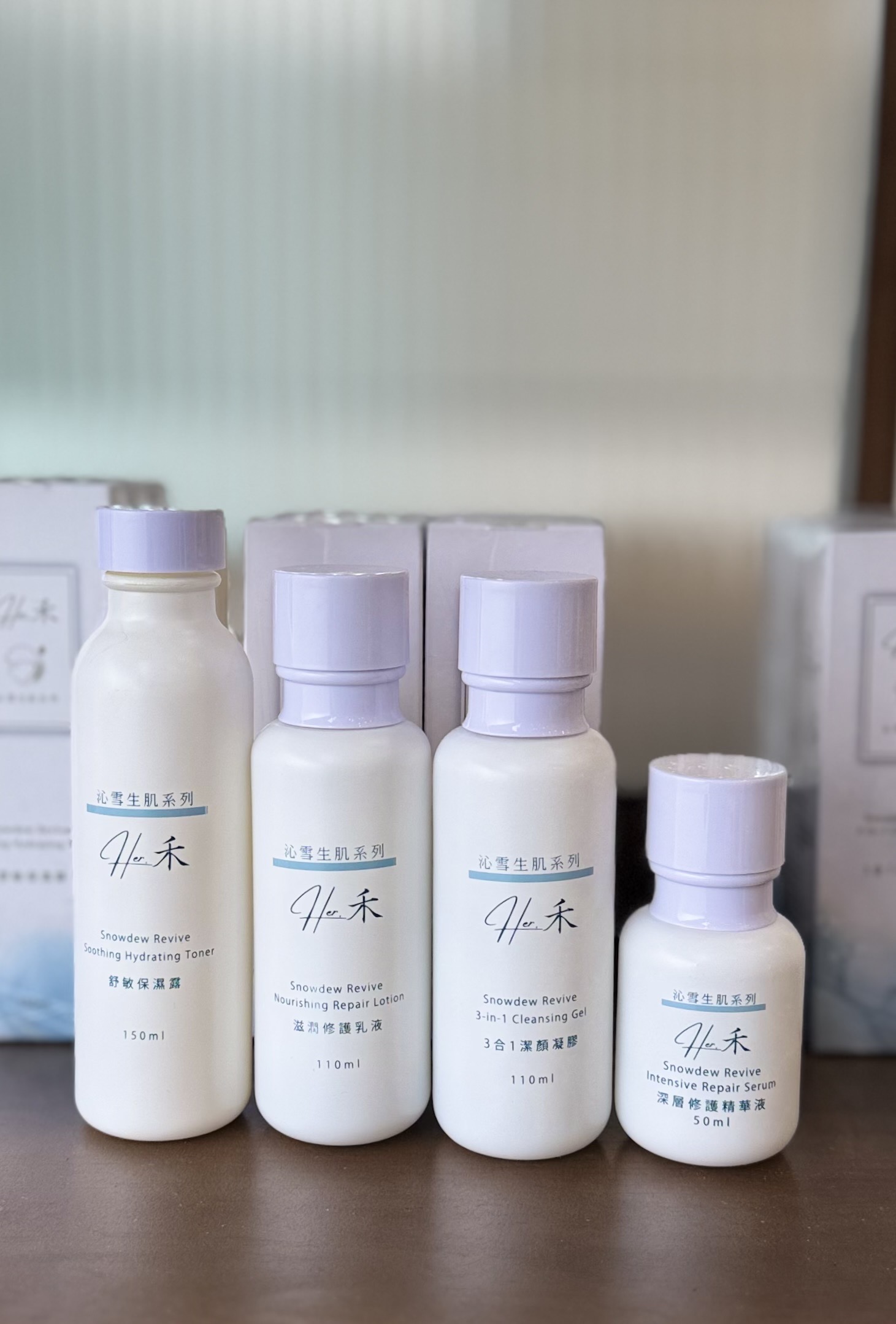 舒敏保濕化妝水, 深層修護精華液, 滋潤修護乳液, 3合1潔顏凝膠